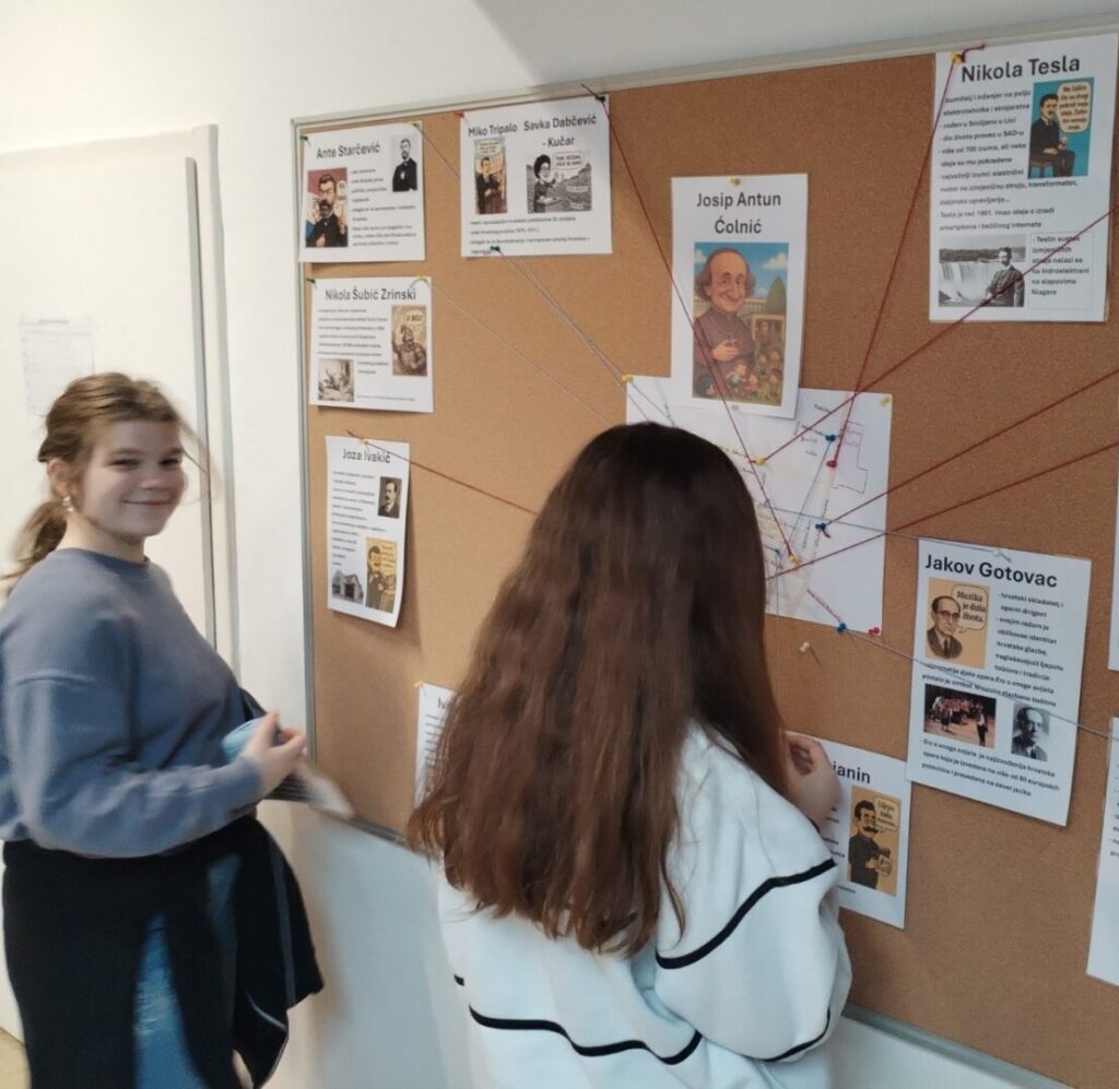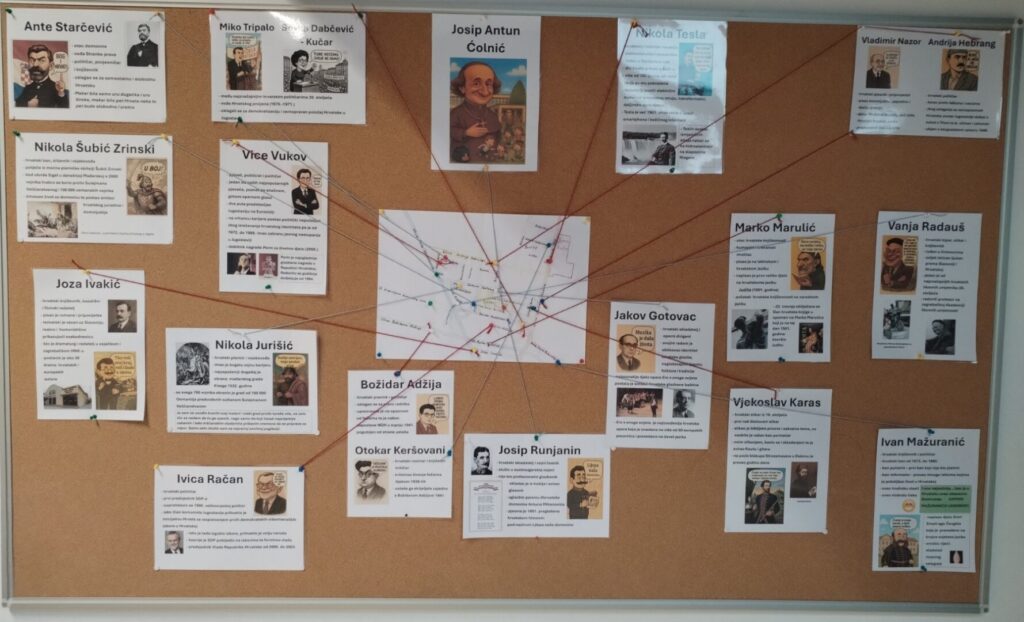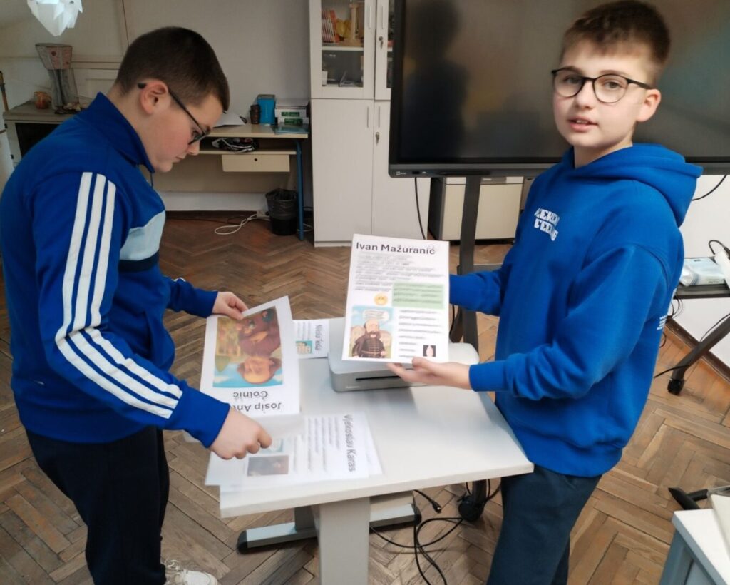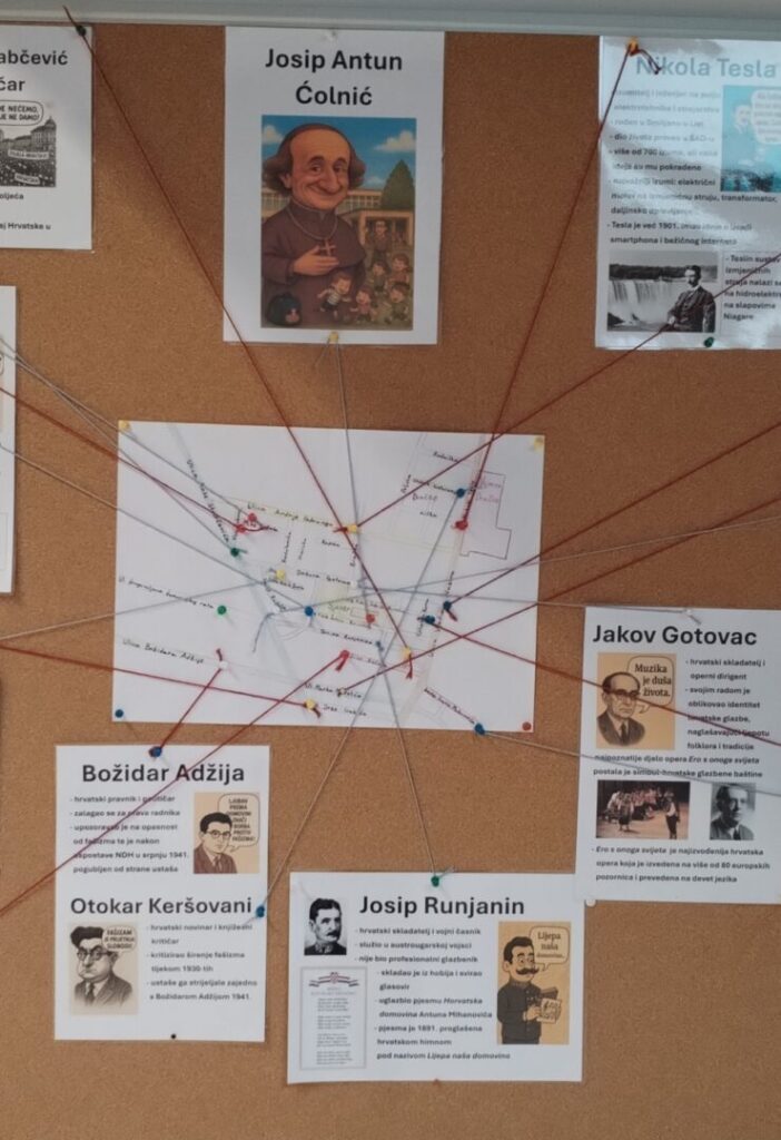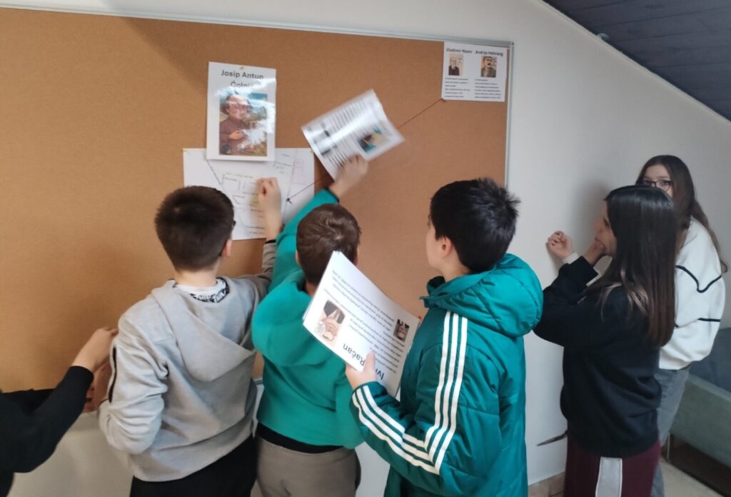 Tijekom prvog polugodišta učenici koji sudjeluju u B1 aktivnosti Mali arheolozi odlučili su napraviti zanimljivo istraživanje i izložiti svoj rad na hodniku škole kako bi ga svi učenici mogli vidjeti. Naime, mali arheolozi su primijetili kako mnogi učenici naše škole ne znaju tko je bila osoba po kojoj nosi ime ulica u kojoj žive. Kroz razgovor su zaključili da ulice nose imena po raznim književnicima, političarima, banovima, slikarima i slično. Odlučili su istražiti tko su te osobe, po čemu su toliko značajne da ulice nose nazive po njima. Da bi rad bio zanimljiviji svaku povijesnu osobu su napravili kao karikaturu koja izgovara neku svoju znamenitu izreku ili misao. Nakon toga su materijale plastificirali i pripremili za izložbu. Napravili su i plan ulica oko naše škole te svaku ulicu povezali s osobom po kojoj se naziva. Njihov rad možete vidjeti na fotografijama.