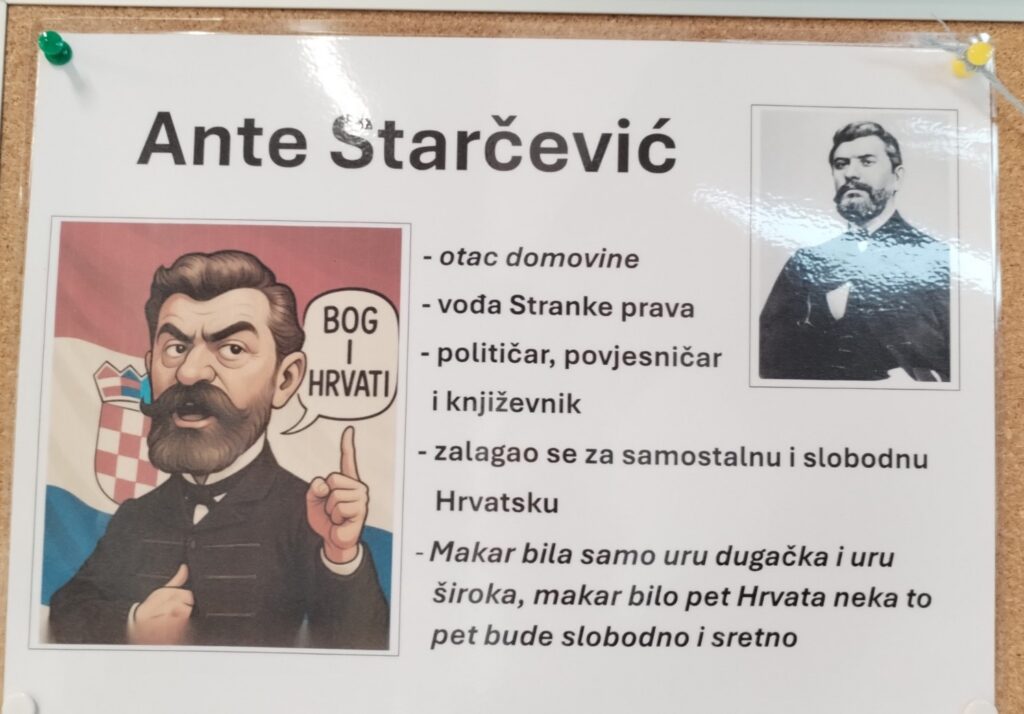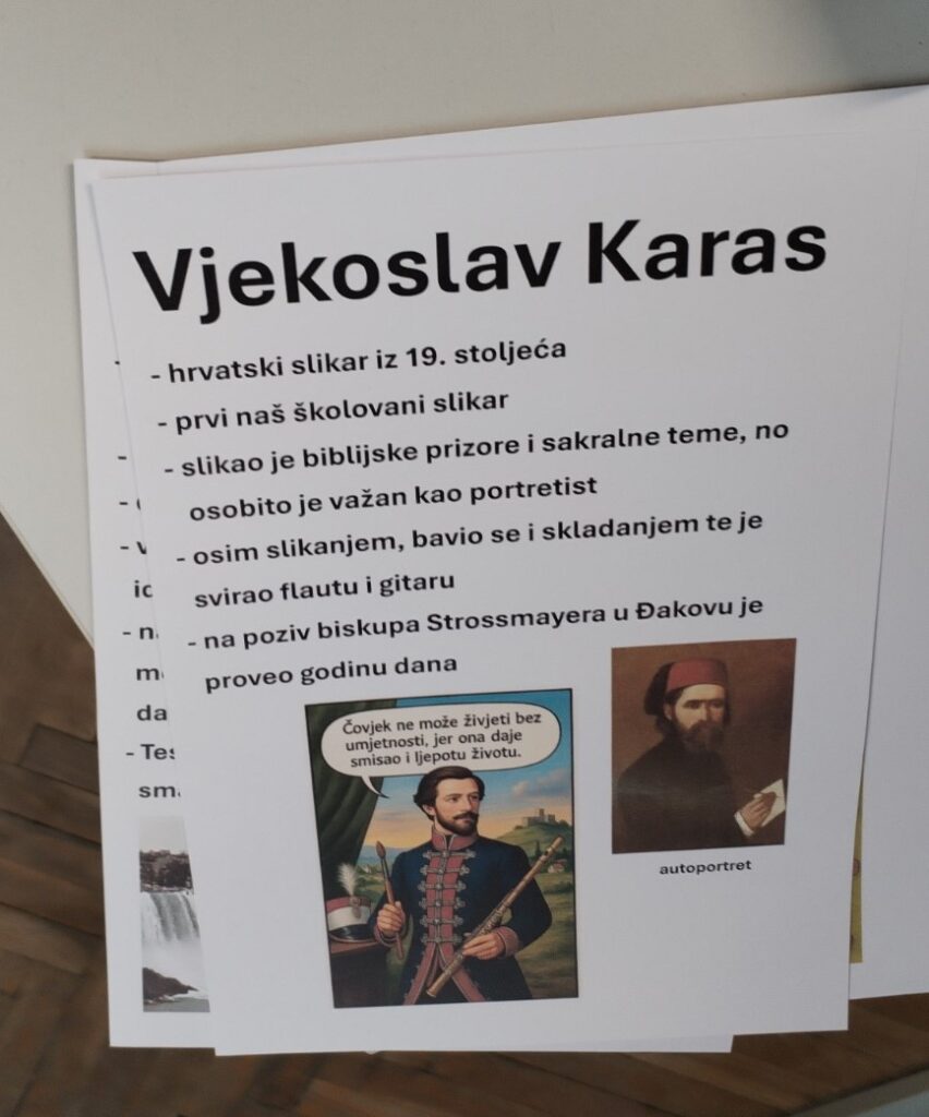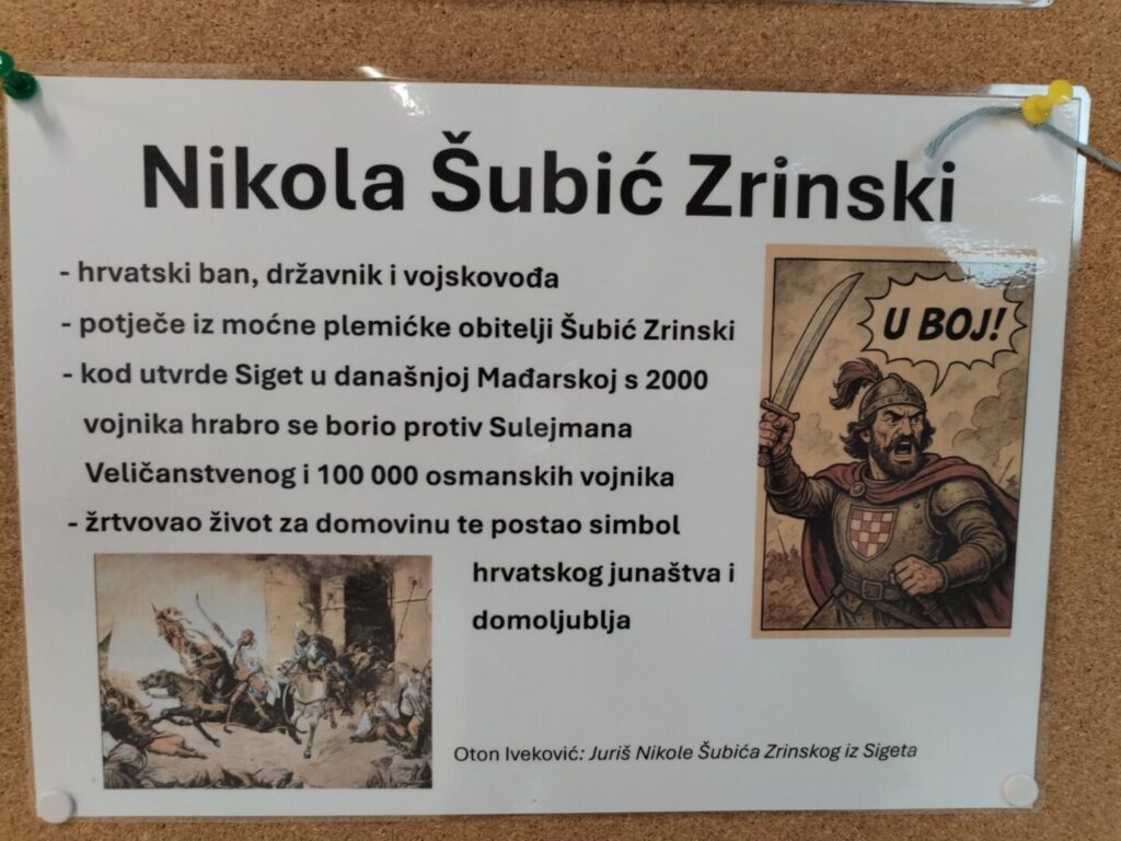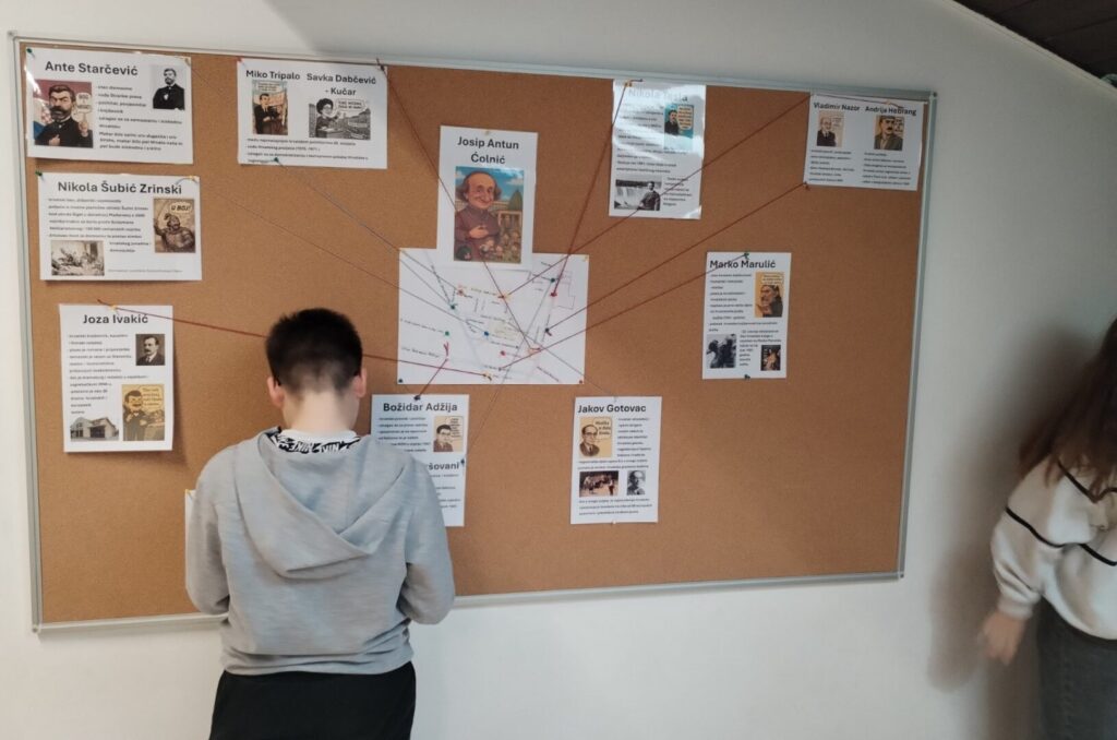 Tijekom prvog polugodišta učenici koji sudjeluju u B1 aktivnosti Mali arheolozi odlučili su napraviti zanimljivo istraživanje i izložiti svoj rad na hodniku škole kako bi ga svi učenici mogli vidjeti. Naime, mali arheolozi su primijetili kako mnogi učenici naše škole ne znaju tko je bila osoba po kojoj nosi ime ulica u kojoj žive. Kroz razgovor su zaključili da ulice nose imena po raznim književnicima, političarima, banovima, slikarima i slično. Odlučili su istražiti tko su te osobe, po čemu su toliko značajne da ulice nose nazive po njima. Da bi rad bio zanimljiviji svaku povijesnu osobu su napravili kao karikaturu koja izgovara neku svoju znamenitu izreku ili misao. Nakon toga su materijale plastificirali i pripremili za izložbu. Napravili su i plan ulica oko naše škole te svaku ulicu povezali s osobom po kojoj se naziva. Njihov rad možete vidjeti na fotografijama.
