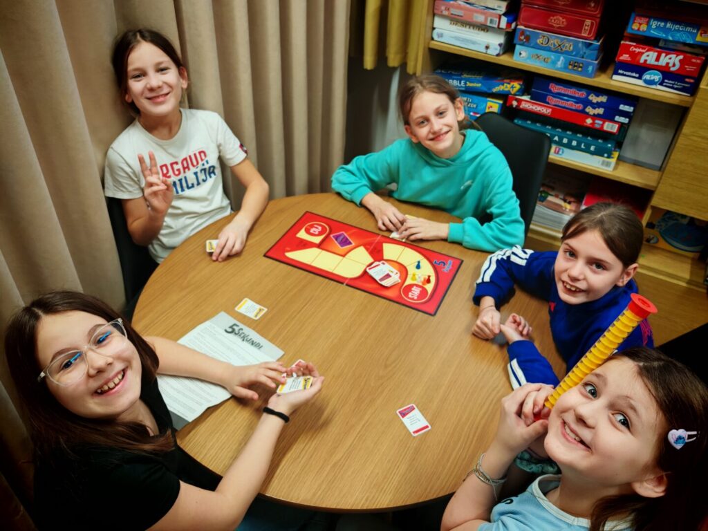 Klub ljubitelja društvenih igara okuplja 16 učenika 4.a i 2.a razreda koji kroz igru razvijaju suradnju, komunikaciju, poštivanje pravila i fair-play ponašanje. Klub njeguje opuštenu i poticajnu atmosferu u kojoj se učenici druže, uče i zajednički provode slobodno vrijeme. Do sada su tijekom godine članovi Kluba igrali brojne društvene igre poput Draw Outa, Rummikuba, Dobblea, igre 5 sekundi, Binga, Booma, Dixita, Yamba, Una i Monopolyja, kao i stolni nogomet i biljar. Aktivnosti su se provodile i na otvorenom, gdje su učenici sudjelovali u igrama poput badmintona, nogometa te streljaštva lukom i strijelom.