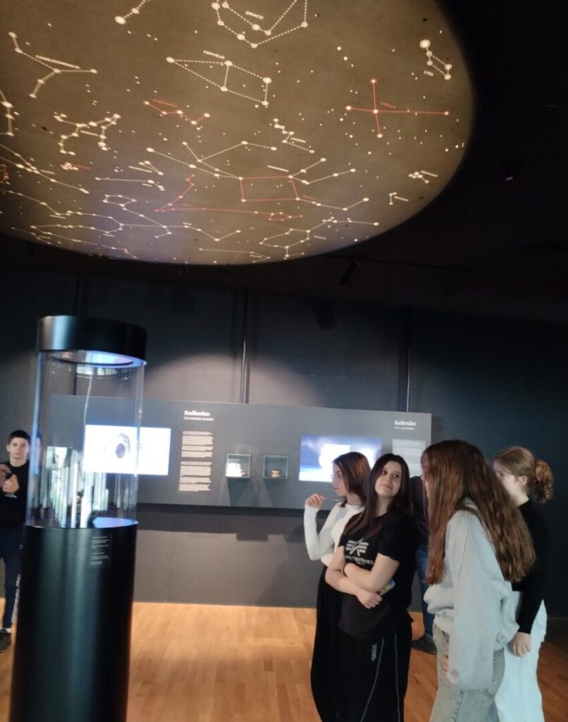 Dana 16. veljače 2026. godine učenici koji sudjeluju u B1 aktivnosti Mladi arheolozi posjetili su Muzej vučedolske kulture pokraj Vukovara. Učenike je kroz Muzej proveo kustos-pedagog Krešimir Martinović. Prvo ih je upoznao s osnovnim informacijama o Muzeju i vučedolskoj kulturi. Vučedolska kultura je dio višeslojnog naselja koje je živjelo više ili manje intenzivno od neolitika do srednjega vijeka. Najintenzivniji život odvijao se ovdje u kasnom 4. i tijekom 3. tisućljeća prije Krista. Muzej je otvoren za javnost 2015. godine. Kroz 19 prostorija na izložbenoj površini od preko 1200 m² prezentirani su civilizacijski dosezi vučedolske kulture. Nakon uvoda učenici su krenuli u vođeni obilazak. Teme obuhvaćene stalnim postavom su: geološki položaj Vučedola, naziv kulture, najraniji Indoeuropljani, stočarstvo, zemljoradnja, lov i ribolov, naselja, kuća, odjeća i tkanje, zanati i obuća, metalurgija, keramika, horizont, kalendar, grobovi, Vučedolac, religija, vučedolska kultura i istodobni svijet, nastajanje muzeja.