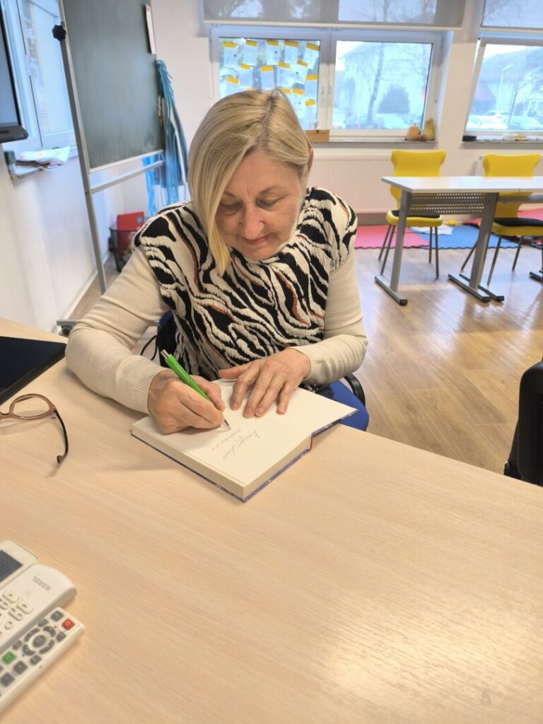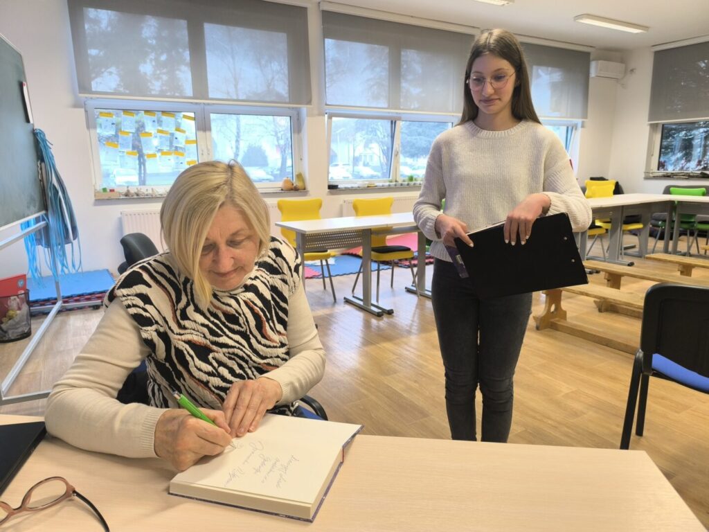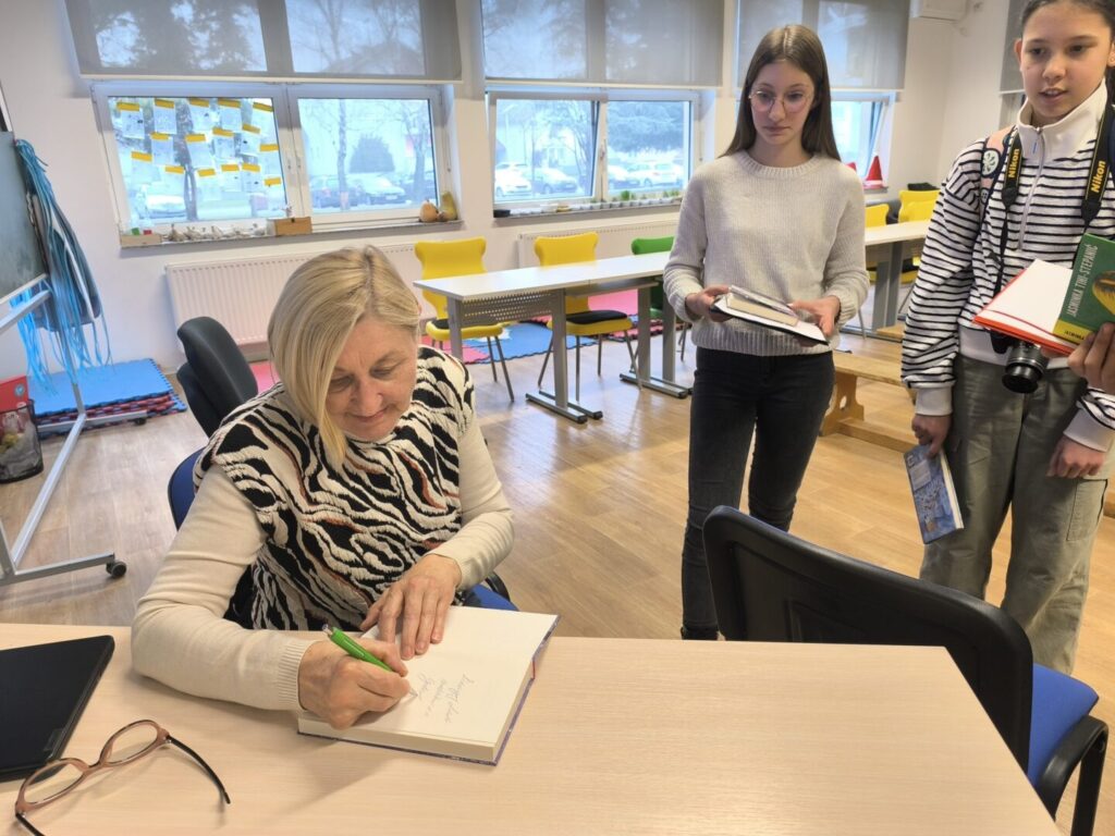 Književnica za mlade i umirovljena nastavnica hrvatskoga jezika, Jasminka Tihi-Stepanić, posjetila je našu školu 11. prosinca. Kroz zanimljivi razgovor predstavila nam je svoja djela koja je dosad napisala. Zajedno s autoricom dotaknuli smo se tema o tinejdžerskoj dobi koje i prevladavaju u njezinim romanima. Kako se tinejdžeri ponašaju, kako joj je bilo raditi kao nastavnici s tinejdžerima, što ju je potaknulo da napiše romane Djevojka u sjeni tuge i Imaš fejs, kako se osjećala dok je pisala roman Ljeto na jezeru Ćiču i mnoge druge teme.
